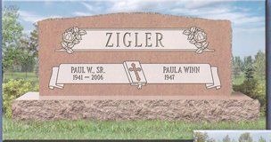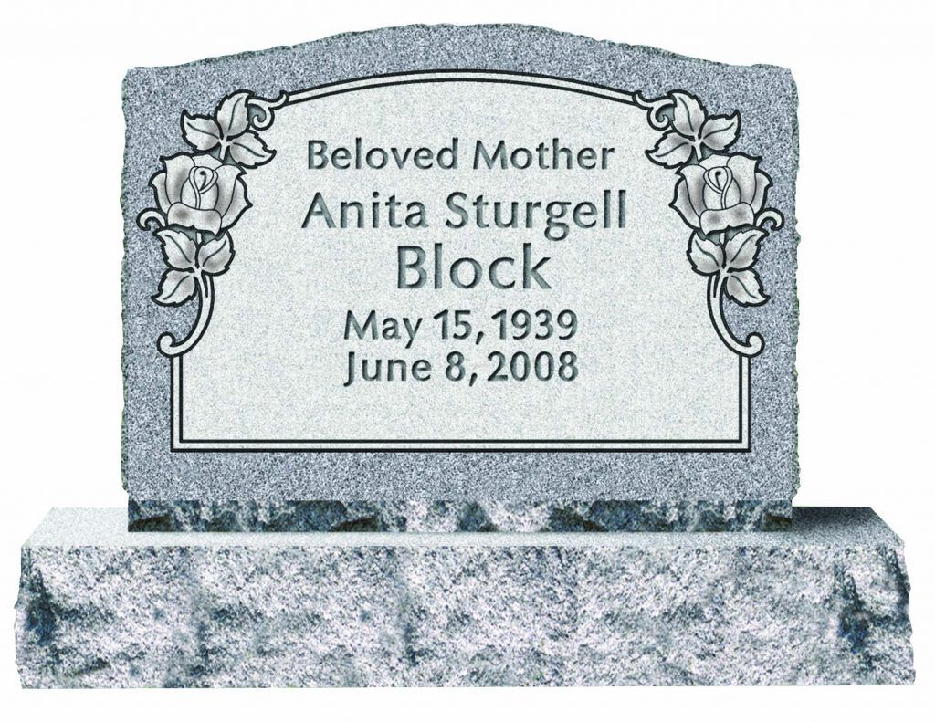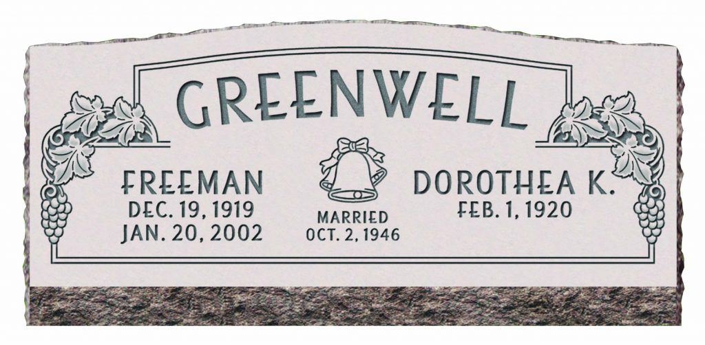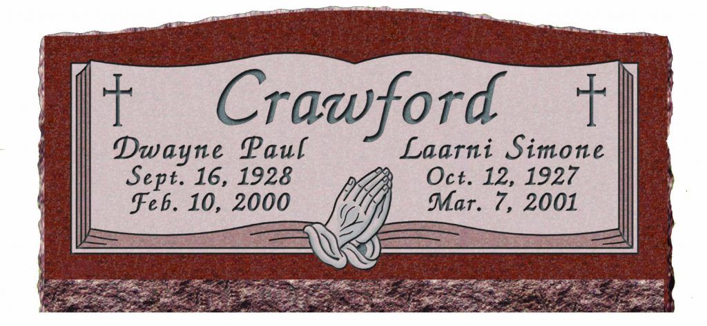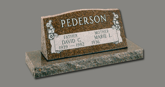 Slant Memorials are full customizable slanted face memorials that may or may not have a granite base beneath them. These can be engraved as singles or doubles and are available with a wide variety of different designs. The choices for granite are also endless.